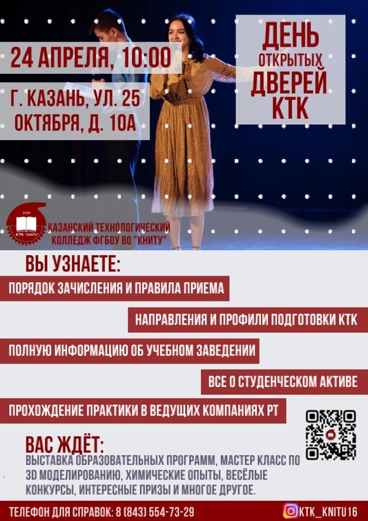 Казанский технологический колледж приглашает абитуриентов и их родителей на День открытых дверей