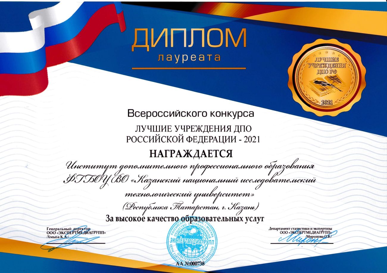 ИДПО КНИТУ стал обладателем звания «Лучшее учреждение ДПО Российской Федерации – 2021»