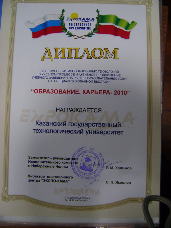 КГТУ принял участие в XIII специализированной выставке «Образование. Карьера - 2010», организованной Минобрнауки РТ и исполнительным комитетом г. Набережные Челны.