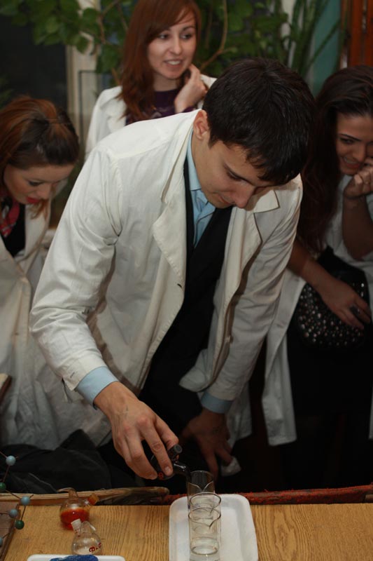 Президент Лиги проводит химический опыт