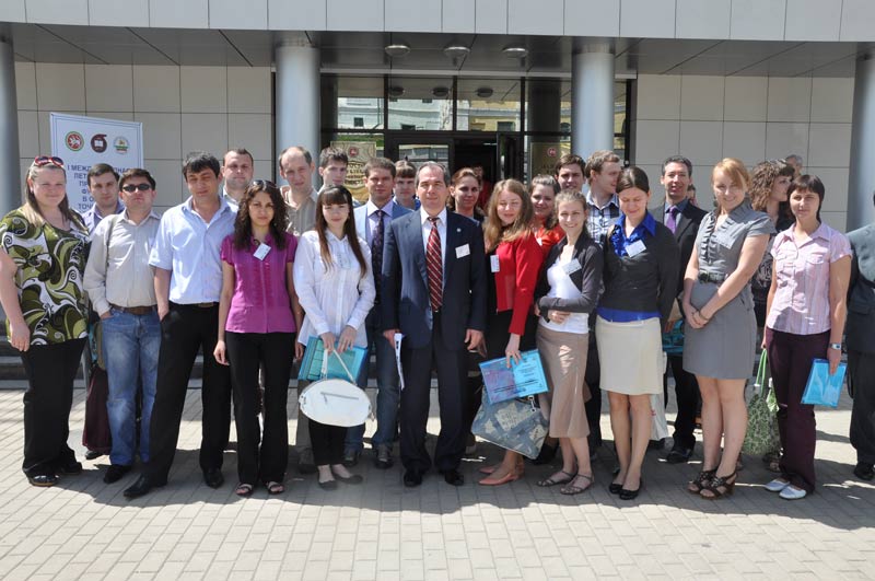 Участники I Международной летней школы программы Фулбрайта «Наноматериалы и нанотехнологии» и ректор КГТУ Герман Дьяконов