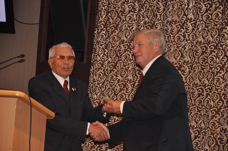Н.А. Шахов вручает медаль проф. А.В. Косточко