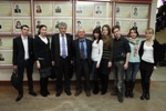 Директор по развитию сотрудничества Фонда инфраструктурных и образовательных программ Роснано Леонид Гозман и декан факультета нанотехнологий КНИТУ Владислав Сысоев со студентами и аспирантами КНИТУ.jpg
