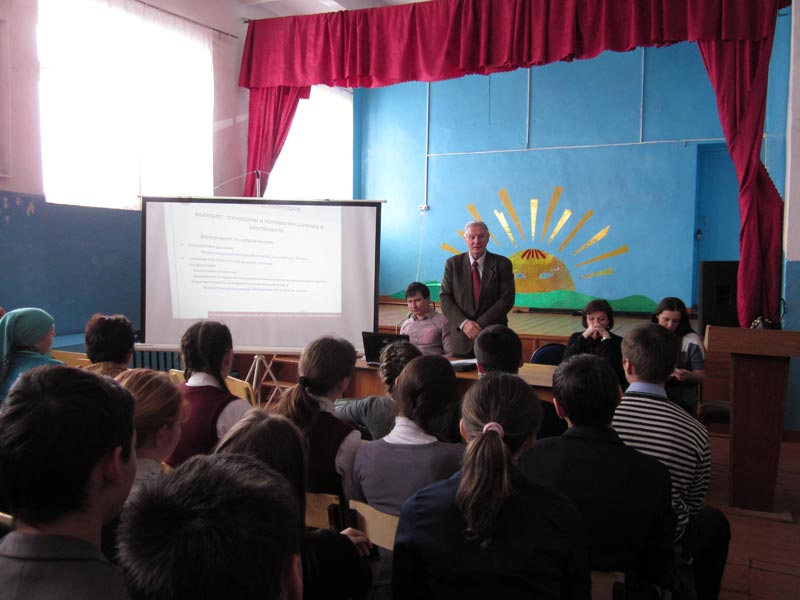 Проф. Г.Н. Кулевцов с лекцией перед школьниками Сармановского района