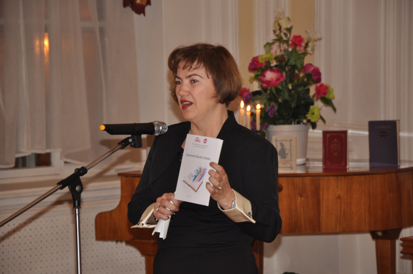 Начальник Пресс-центра КНИТУ Алла Кайбияйнен презентует сборник стихотворений участников конкурса "В начале было слово..."