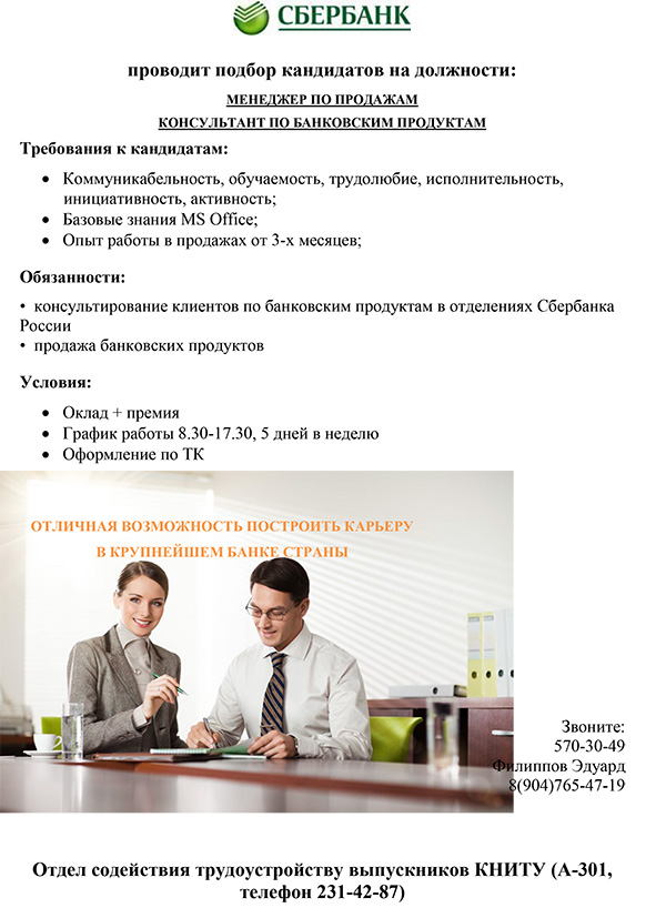 «Сбербанк России» проводит подбор кандидатов