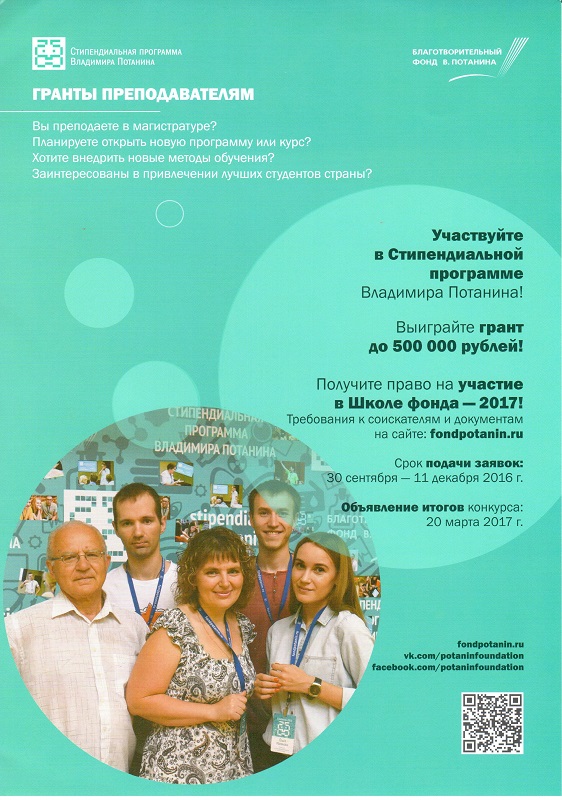 Стипендиальная программа Владимира Потанина-преподавателям магистратуры