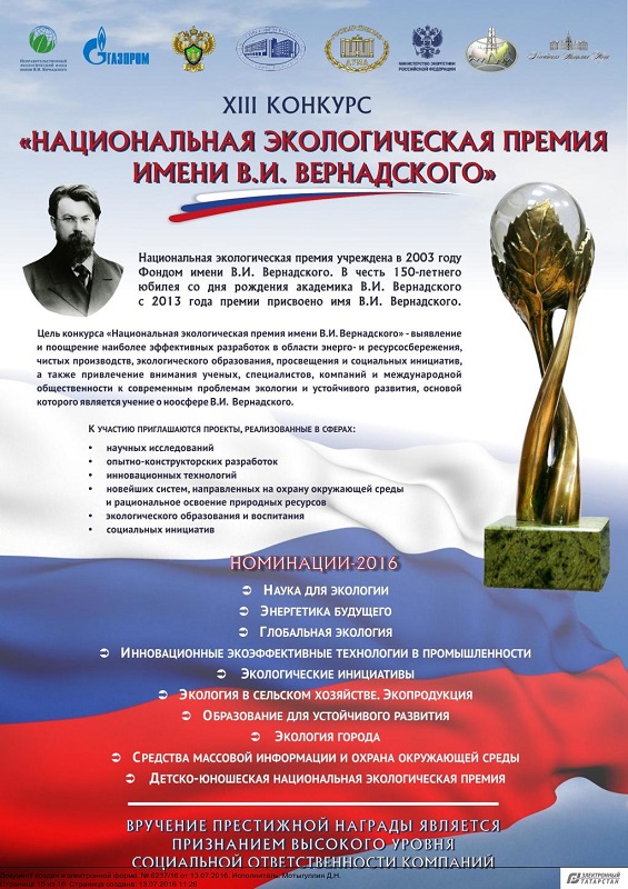 XIII конкурс "Национальная экологическая премия им. В.И.Вернадского"