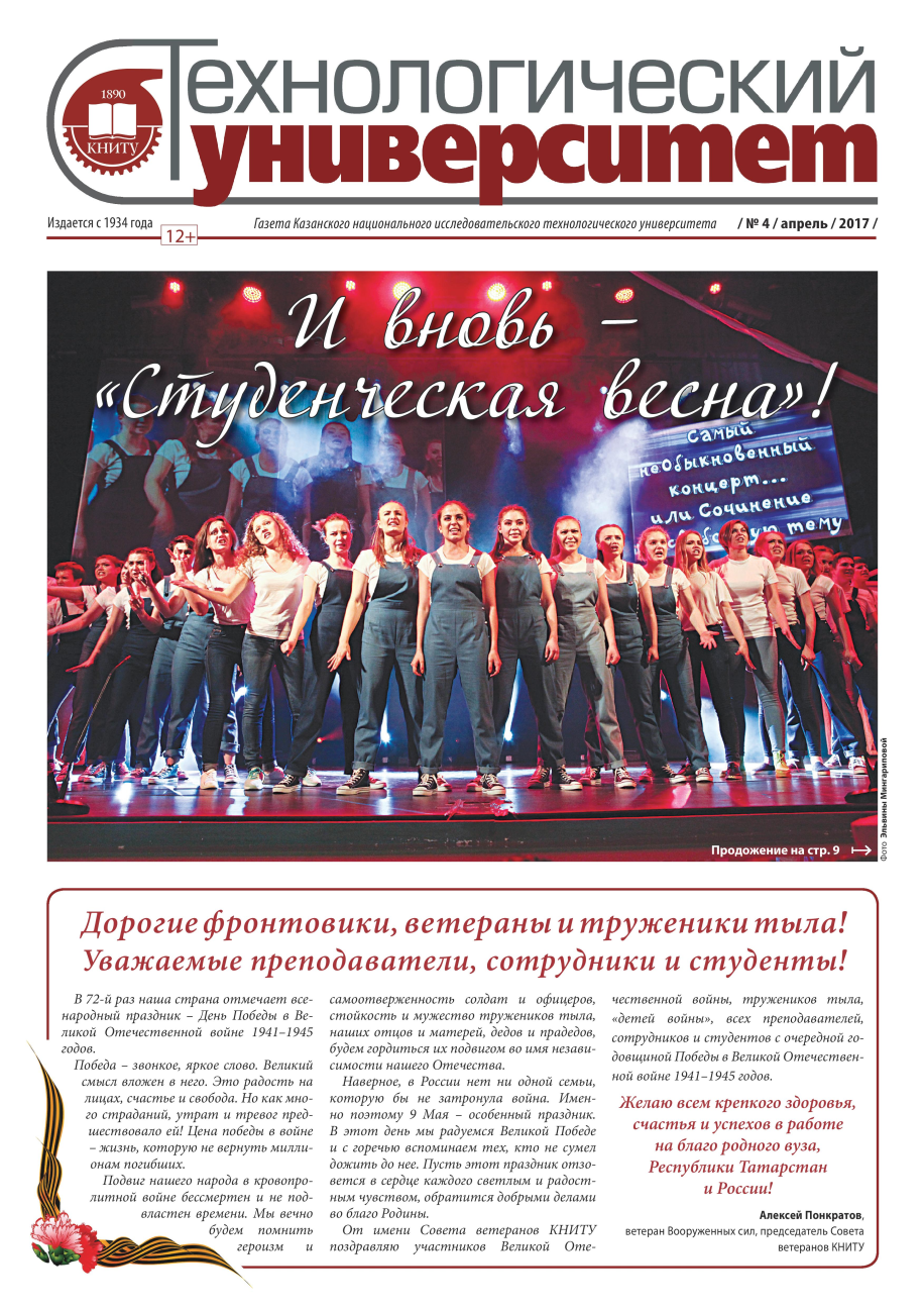 Вышел в свет апрельский номер газеты «Технологический университет» (№ 4, 2017)