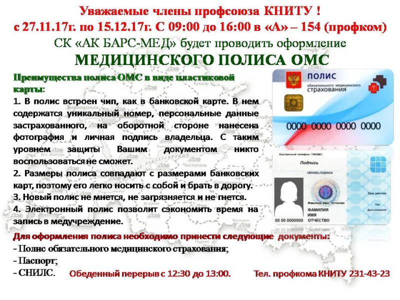 Оформление медицинских полисов ОМС в виде пластиковых карт страховой компанией «АК БАРС-Мед» в профкоме КНИТУ