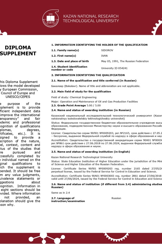 Европейское приложение к диплому облегчает признание результатов обучения в КНИТУ зарубежными образовательными организациями и работодателями, так как представляет их в международно-признаваемой форме. Выпускники КНИТУ, планирующие продолжить обучение в зарубежных вузах или работать в международных компаниях, могут столкнуться со сложностями при подаче документов, обусловленными различиями в системах образования. ЕПД призвано представить результаты обучения в международно-понятной форме.