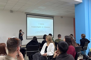 Организатором конкурса является Комитет по делам детей и молодёжи Исполнительного комитета г.Казани. Активисты приняли участие в конкурсе в номинации «Лучший графический плакат на антикоррупционную тематику» и получили дипломы за участие. Студенческая олимпиада «Антикоррупция» от ФГАОУ ВО «Тюменский государственный университет» В период с 6 сентября по 9 декабря 2024 года ФГАОУ ВО «Тюменский государственный университет» провёл Международную студенческую олимпиаду «Антикоррупция». Цель олимпиады — формирование у молодёжи антикоррупционного сознания и гражданской позиции, ориентированной на неприятие коррупции как социального явления, стимулирования общественной деятельности обучающихся и преподавателей, направленной на изучение проблем противодействия коррупции. Олимпиада проводилась в 2 этапа: этап в онлайн-формате и очный этап, проводимый в Институте государства и права ФГАОУ ВО «Тюменский государственный университет». Активисты были награждены дипломами за участие. Цикл мероприятий по антикоррупционной политике среди молодёжи «Чистый взгляд» В период с 1 сентября по 9 декабря 2024 года прошёл цикл мероприятий по антикоррупционной политике среди молодёжи «Чистый взгляд» (далее - цикл). Организаторами мероприятия является Региональная молодёжная общественная организация «Лига студентов Республики Татарстан» при поддержке Правительства Республики Татарстан и Министерство по делам молодёжи Республики Татарстан. Цикл представлял собой серию лекций и семинаров в комбинированном формате, направленных на борьбу с коррупцией в учебных заведениях, для руководителей и активистов антикоррупционных комиссий учебных заведений Республики Татарстан. Студенты участвовали в мероприятиях: