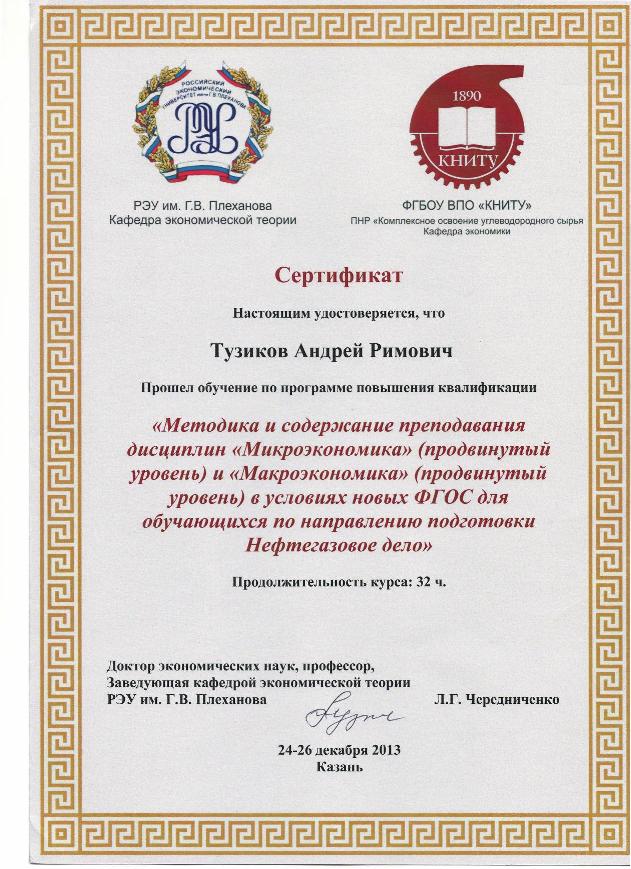 Тузиков Андрей Римович доктор социологических наук, профессор работает в КНИТУ с 1995 года. После защиты докторской диссертации в 2004 году был избран деканом факультета, а в 2005 году заведующим кафедрой, которыми он успешно руководит и в настоящее время. Общий стаж работы в системе высшего образования 25 лет Большую организаторскую работу он успешно сочетает с активной научно-исследовательской работой по изучению идеологических, социально-культурных, социально-политических и социально-экономических процессов в современном российском обществе. Диапазон научных исследований профессора Тузикова А.Р. охватывает исследования перспективных проблем, связанных с идеологической легитимацией новой российской государственности, идеологией и институтами инновационного развития, геополитикой, социологией массовых коммуникаций, информационно-идеологической безопасности нашей страны, социологией массового спорта, реформированием высшего образования, экономической социологией, социологией общественного здоровья и культуры. Методологические основы теорий идеологии в социологической науке явились предметом докторской диссертации, которая была защищена в Институте социально-политических исследований РАН в 2003 году и оценена диссертационным советом данного института как новое крупное достижение в разработке теоретических основ технологий идеологического воздействия и развития идеологических институтов в современных обществах. Результаты научных исследований опубликованы в центральных журналах (ПОЛИС, СОЦИС, «Социально-гуманитарные знания», «Политическая наука», «Безопасность Евразии», «Высшее образование в России», «Наука. Политика. Предпринимательство», «Университетское управление» и др.) а также в девяти монографиях. Всего опубликовал более 250 печатных работ. Двукратный лауреат всероссийского конкурса на лучшую научную и учебную книгу (Сочи 2005, 2006). Лауреат третьего конкурса (2004 год) на соискание индивидуальных и коллективных грантов в области общественных и гуманитарных наук (МИОН) проводимого Министерством образования и науки российской федерации при поддержке корпорации Карнеги в Нью- Йорке и фонда Д. и Катрин Макартуров. в рамках данного гранта были осуществлены глубокие исследования потенциала идеологии экстремизма среди молодежи национальных республик Поволжья. Руководил научными исследованиями при поддержке грантов РГНФ (2007-2008), ФЦП Министерства образования и науки (в 2006-2013 гг.) В рамках данных исследований изучены и продолжают изучаться проблемы в области развития отечественного образования, инновационной культуры и идеологии, а также институтов инновационного развития. Результаты отражены в трех коллективных монографиях под его научной редакцией «Регионы России: Общество знания как условие реализации стратегии модернизации и инновационного развития» (2013), «Регионы России: инновационное развитие и модернизация социального управления» (2011), «Регионы России: государственное управление, безопасность и национальные проекты в условиях вызовов ХХI века» (2009) . Имеет опыт участия и руководства международными исследовательскими проектами при поддержке грунтовых программ Алгарыш, фондов Форда, ТЕМУПУС и ДААД. Лауреат международной программы Фулбрайт. Проводил исследования и стажировался в универс
