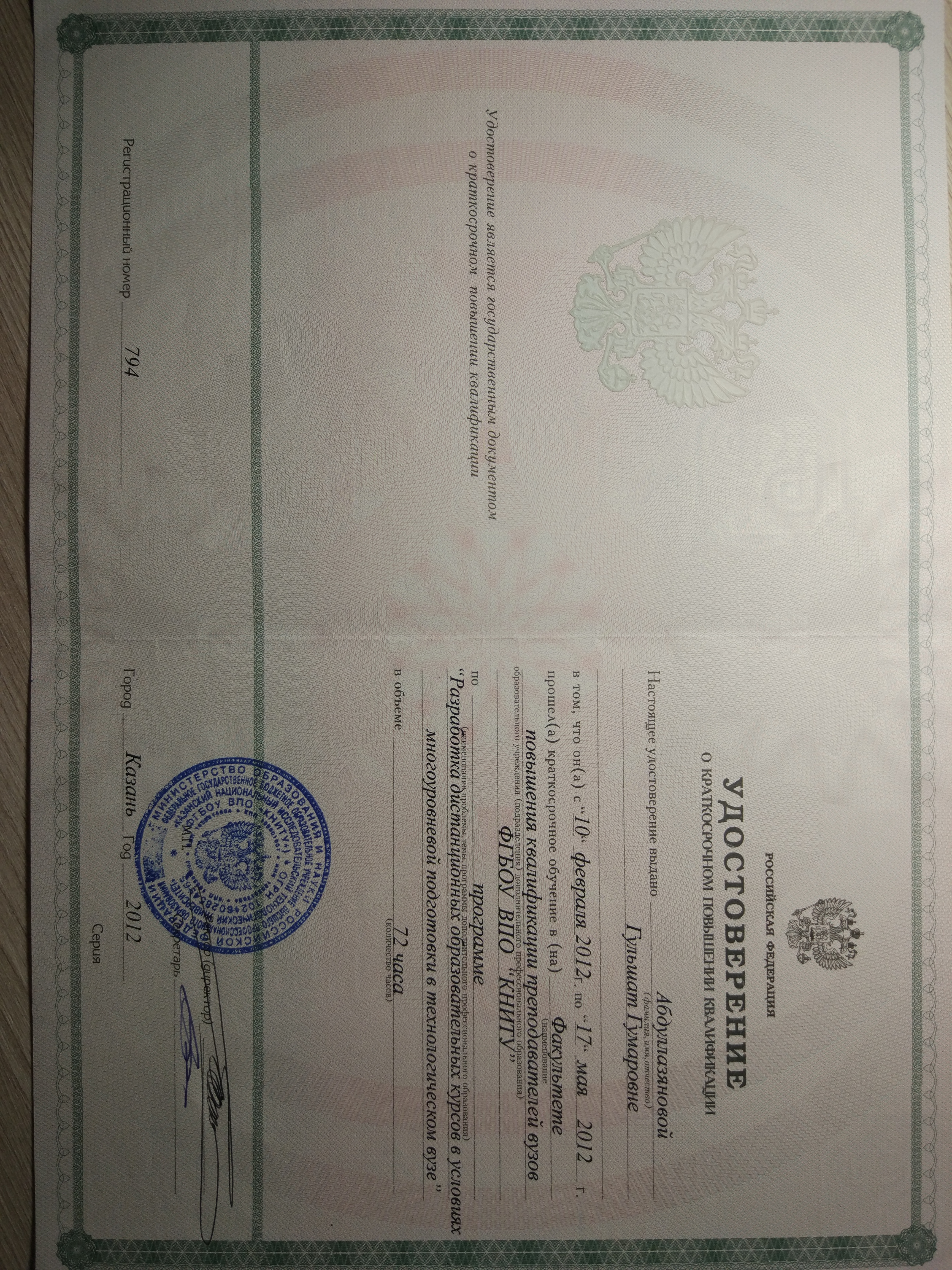 Повышение квалификации: