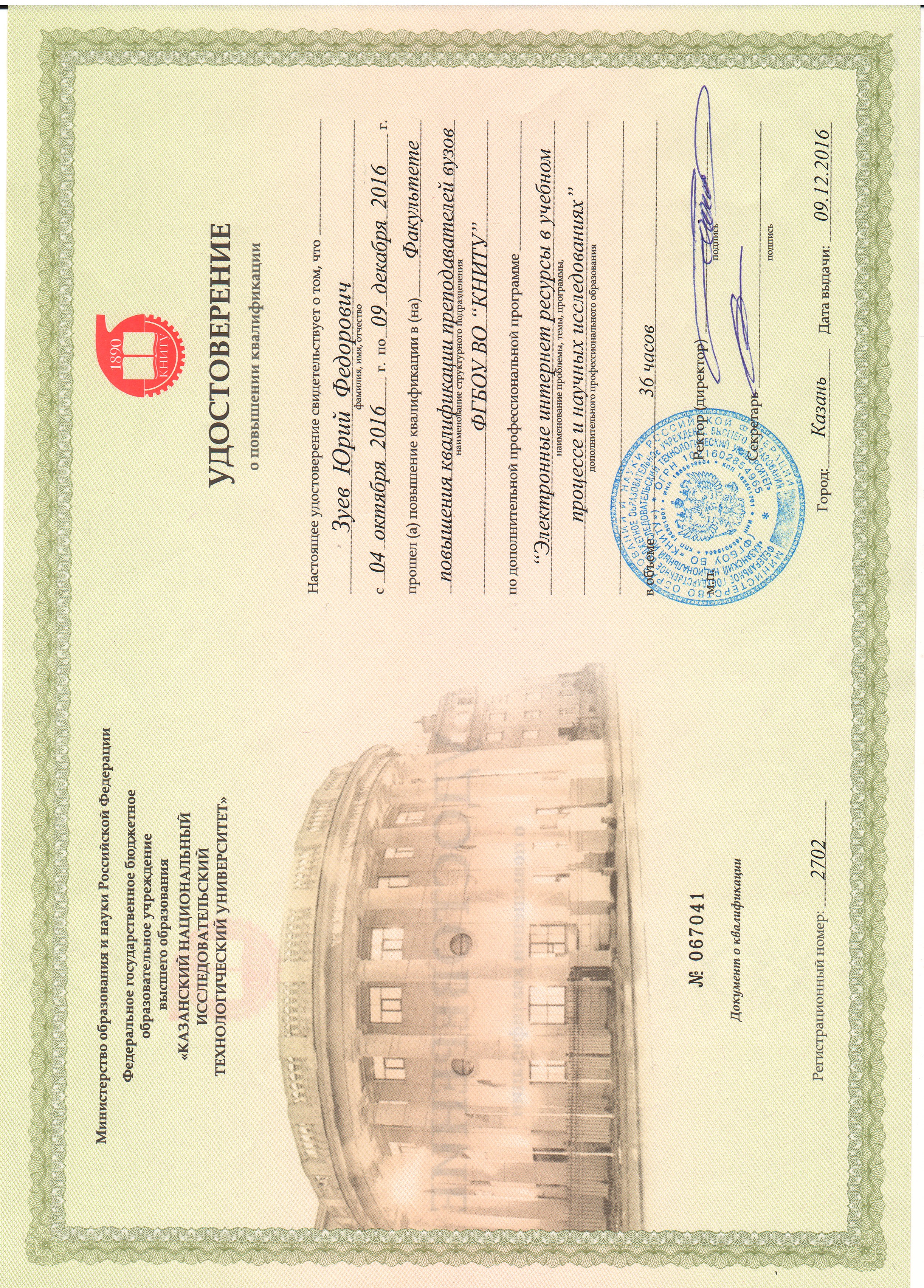 Диплом о высшем профессиональном образовании. Выдан: КГУ. 27.06.1973. Квалификация: Радиофизик. Специальность: Радиофизика и электроника.