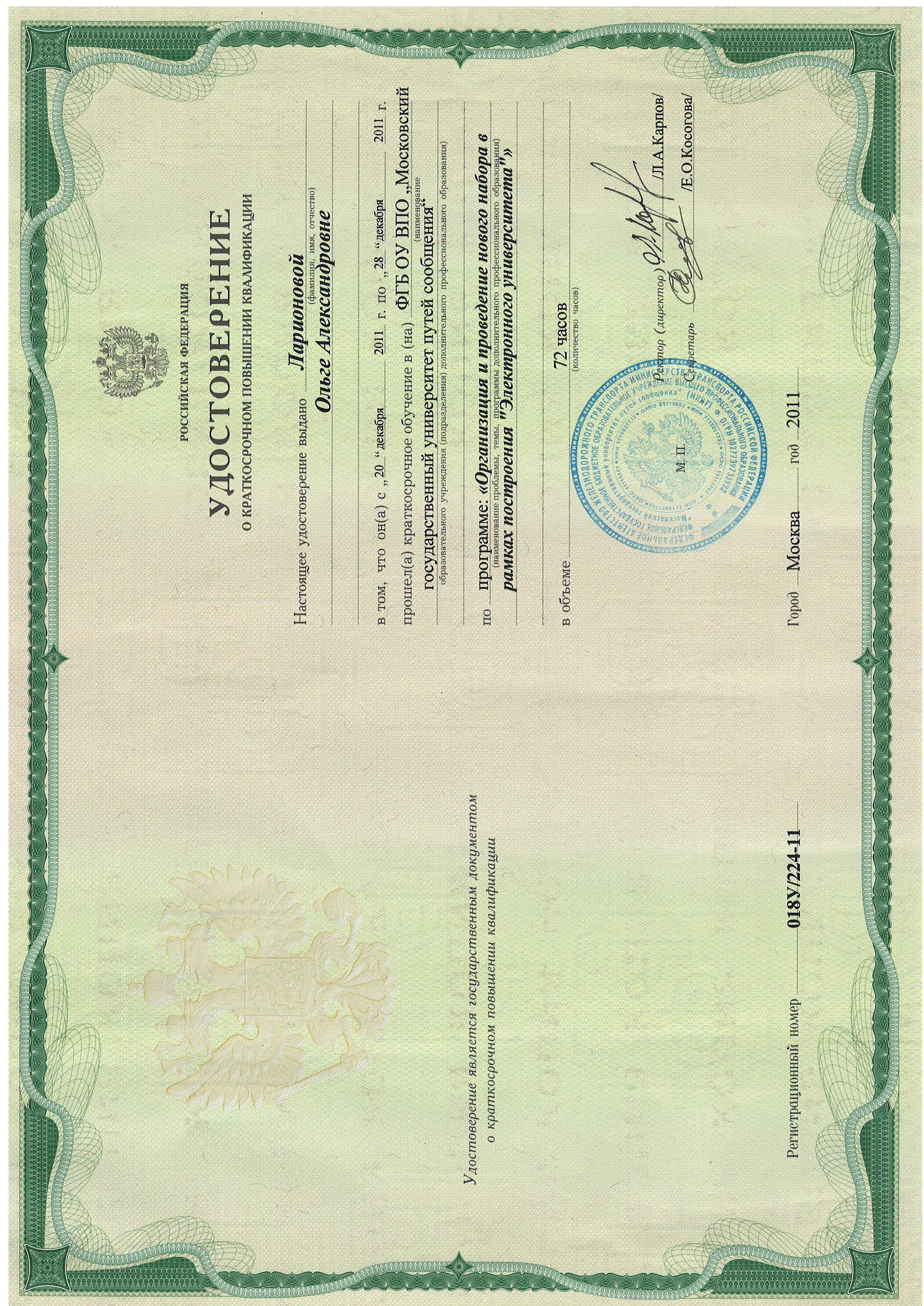 Повышение квалификации: