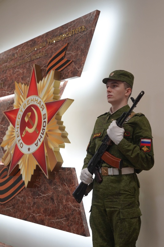22 февраля, накануне Дня защитника Отечества, руководство университета, ветераны, сотрудники и курсанты военно-учебного центра возложили гирлянду и цветы к мемориалу погибших воинов — преподавателей и студентов КНИТУ.