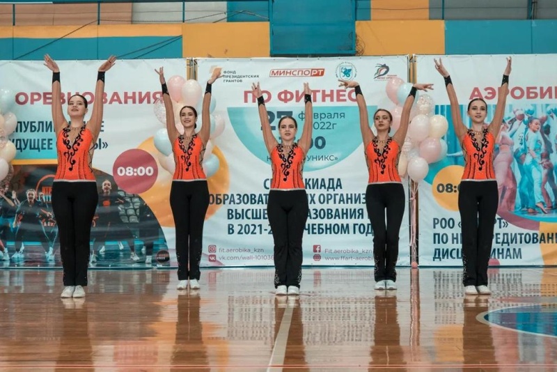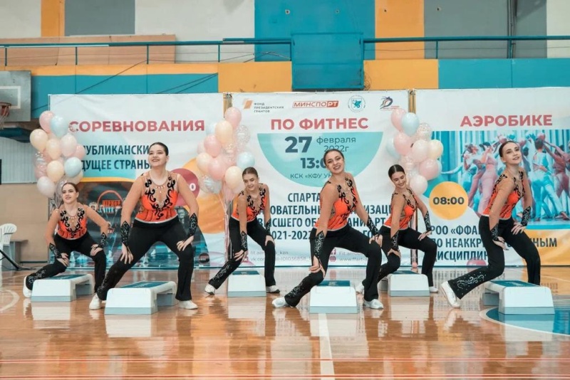 27февраля КСК УНИКС состоялись соревнования по фитнес-аэробике среди студентов Республики Татарстан.В соревнованиях приняли участие 8 вузов,29 команд , 250 спортсменов.Наш Вуз на этих соревнованиях представляли 4 команды по фитнес-аэробике .1 команда в категории “аэробика классика».2 команда «степ-аэробика ,3 команда «хип-хоп ,4 команда «аэробика 5человек».В категории «аэробика-классика» наши девушки заняли почетное 2 место.В категории «степ-аэробика»-4 место,и в категории «хип-хоп»-4 место.