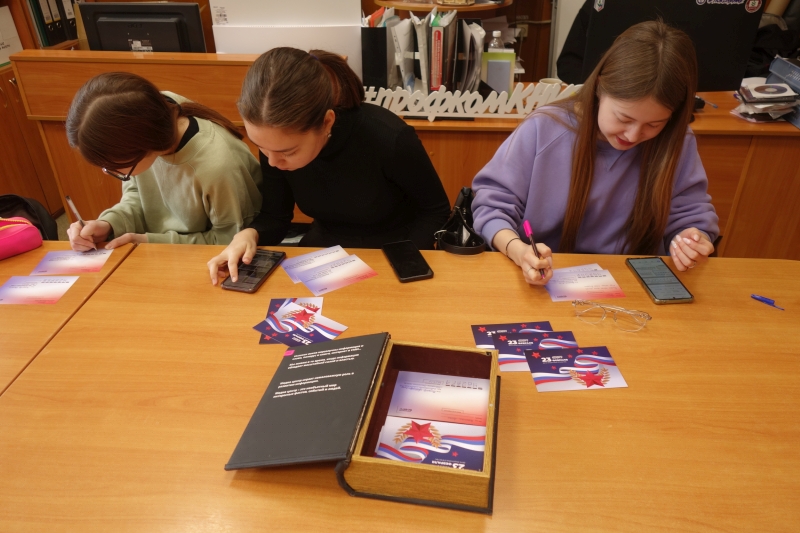 В преддверии празднования Дня защитника Отечества и Международного женского дня в профкоме КНИТУ более 150 студентов университета — членов профсоюза написали своим свои родным и любимым людям поздравления с праздниками на праздничных фирменных открытках Профкома КНИТУ. По итогам акции 169 заполненных открыток были отправлены в разные уголки нашей страны, а некоторые — и в другие страны.