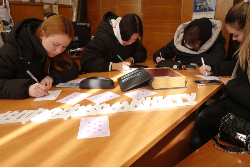 В преддверии празднования Дня защитника Отечества и Международного женского дня в профкоме КНИТУ более 150 студентов университета — членов профсоюза написали своим свои родным и любимым людям поздравления с праздниками на праздничных фирменных открытках Профкома КНИТУ. По итогам акции 169 заполненных открыток были отправлены в разные уголки нашей страны, а некоторые — и в другие страны.
