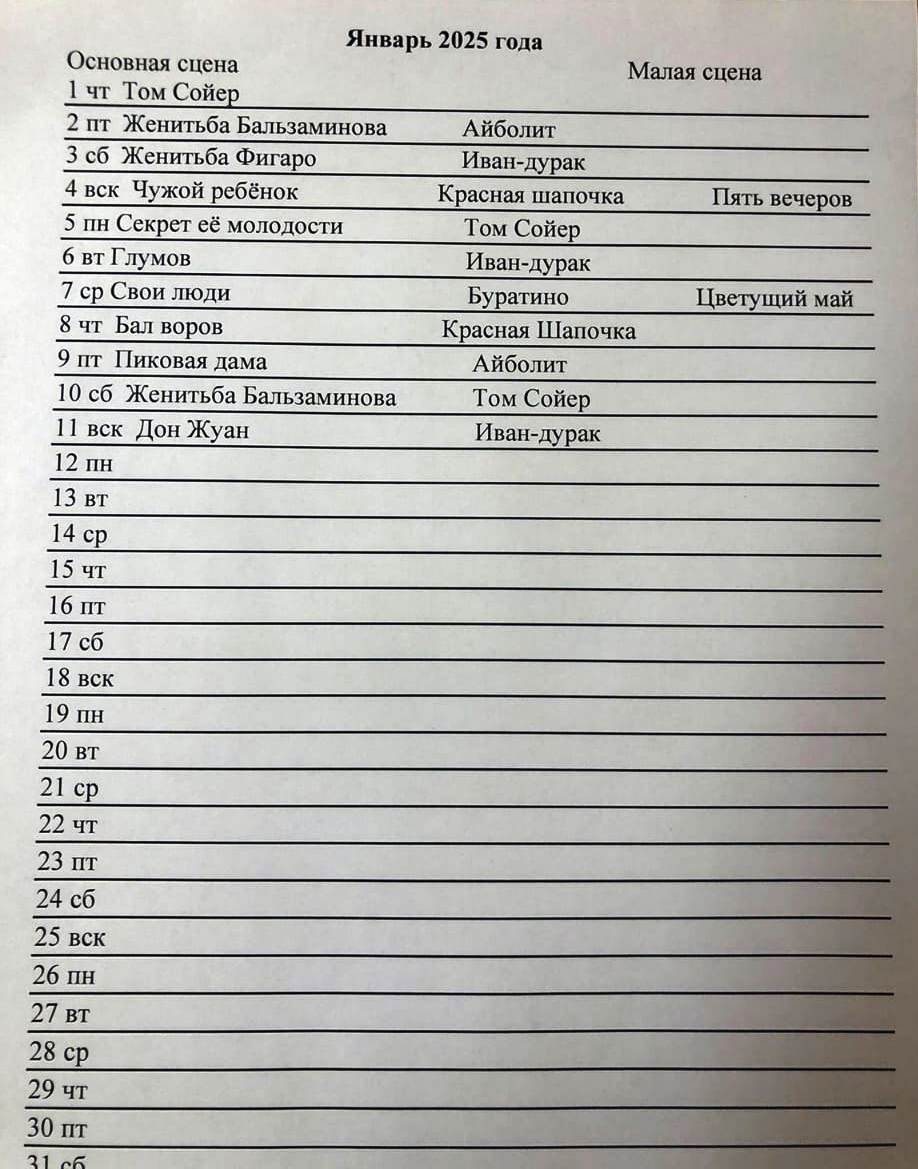 В среду 22 октября, 29 октября, 12 ноября, 19 ноября, а также в среду 26 ноября 2025 г. в профкоме (А-154) с 14:00 до 16:00 можно будет приобрести (и заказать) билеты на представления декабря 2025 г. – января 2026 г. у общественных распространителей театральных билетов в театры: