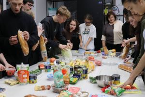 Третий этап - «Кулинарный дуэт», где пары готовили блюдо, которое является традиционным в их семье или символизирует их пару. Кулинарные работы оценивали: Александр Сироткин, директор ИППБТ, Ольга Сироткина, преподаватель кафедры профессионального и педагогического образования, Анна Савельева, заместитель директора ИХТИ по воспитательной работе, Елизавета Диденко, представитель молодёжного объединения «Молодёжка Сибура».