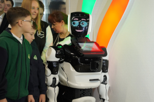 В смежном с новой бренд-зоной коридоре корпуса Л развернулась карьерная выставка предприятий ГК «Татнефть», организованная совместно с кафедрами ИНХН. Вниманию участников были представлены зрелищные химические опыты, возможность взглянуть в электронно-оптические микроскопы, увидеть работу промышленных роботов и многое другое. Кстати, тема роботов была ярко представлена на открытии нового пространства: гостей церемонии встречали приветливый робот-андроид, готовый поделиться любой информацией о «Татнефти», и шустрый серебристый робопёс.