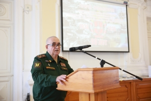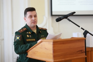 Обзору этапов развития службы горючего, личностям её руководителей разных лет посвятил доклад начальник ВУЦ полковник Хамит Тухбиев. У службы горючего — универсальный профиль напомнил он: специалисты службы не только самым активным образом задействуются в ходе военных конфликтов, но и при ликвидации последствий чрезвычайных ситуаций в мирное время.