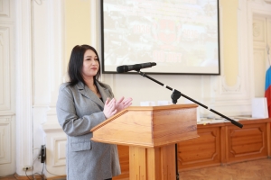 От имени руководства университета собравшихся — офицеров, курсантов и ветеранов — приветствовала и.о. проректора по режиму и безопасности Рузанна Шакирова.