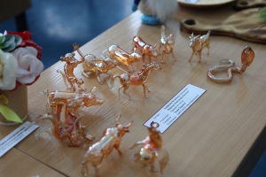 Ольга Черкасова представила картину на сказочную тему, выполненную способом аппликации цветной кожи на канве, Маргарита Минлебаева — милые керамические фигурки, Наталья Денисенко — выразительную серию «Куклы-затейники» из папье-маше, украшенные тканью и мехом, и изящные фигурки из гипса, Мария Кузьмина — элегантную бижутерию из джинсовой ткани, Владимир Перфилов и Александр Маринин — набор стеклянных фигурок «Знаки Зодиака», Владимир Терентьев — вырезанную из дерева посуду, Алсу Сибгатуллина — композицию из искусственных цветов.