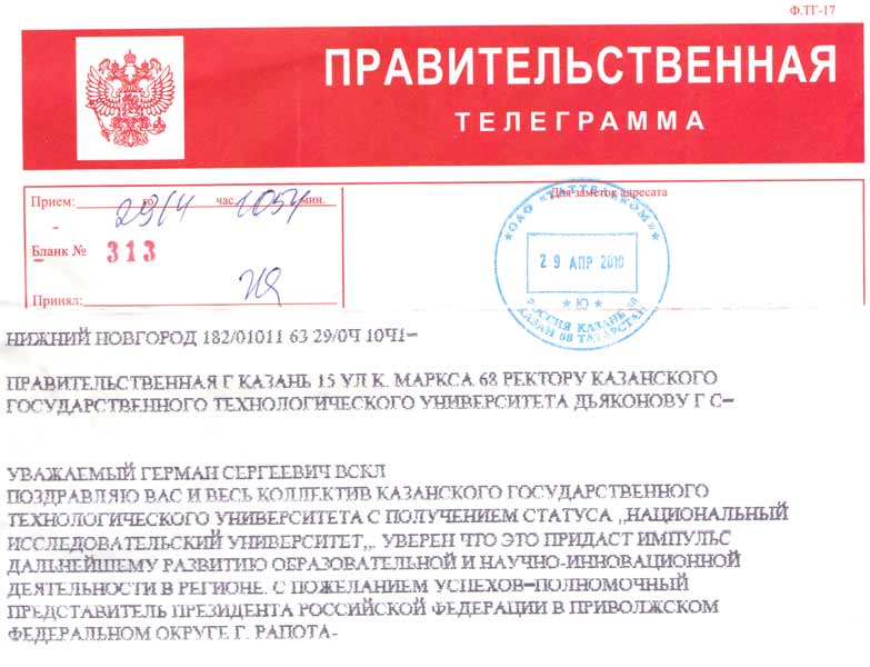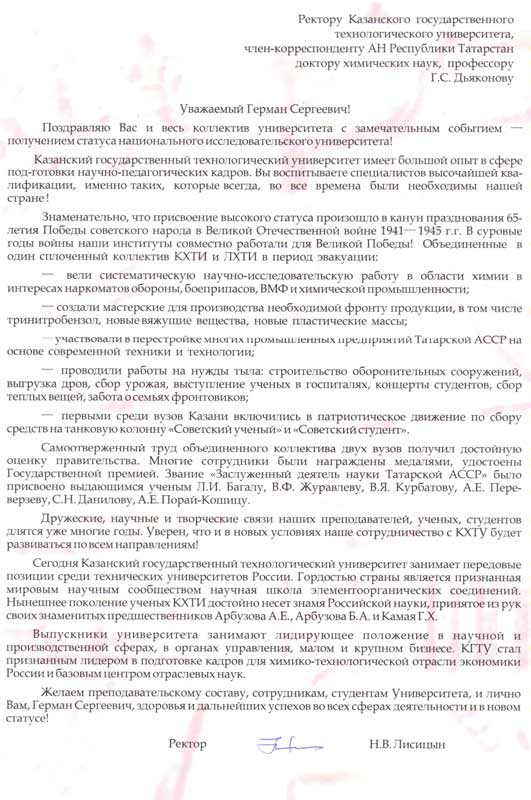 Коллектив КГТУ поздравляют с получением статуса национального исследовательского университета!