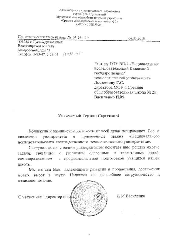 МОУ «Средняя общеобразовательная школа № 2» г. Гусь-Хрустальный