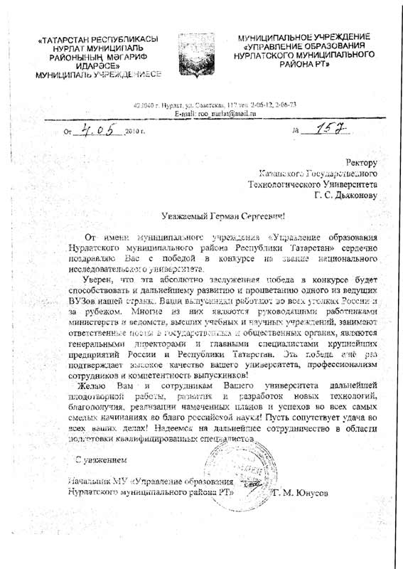 Начальник мунициального учреждения "Управление образования Нурлатского муниципального района РТ" - Юнусов Габдельгазиз Миннеахметович