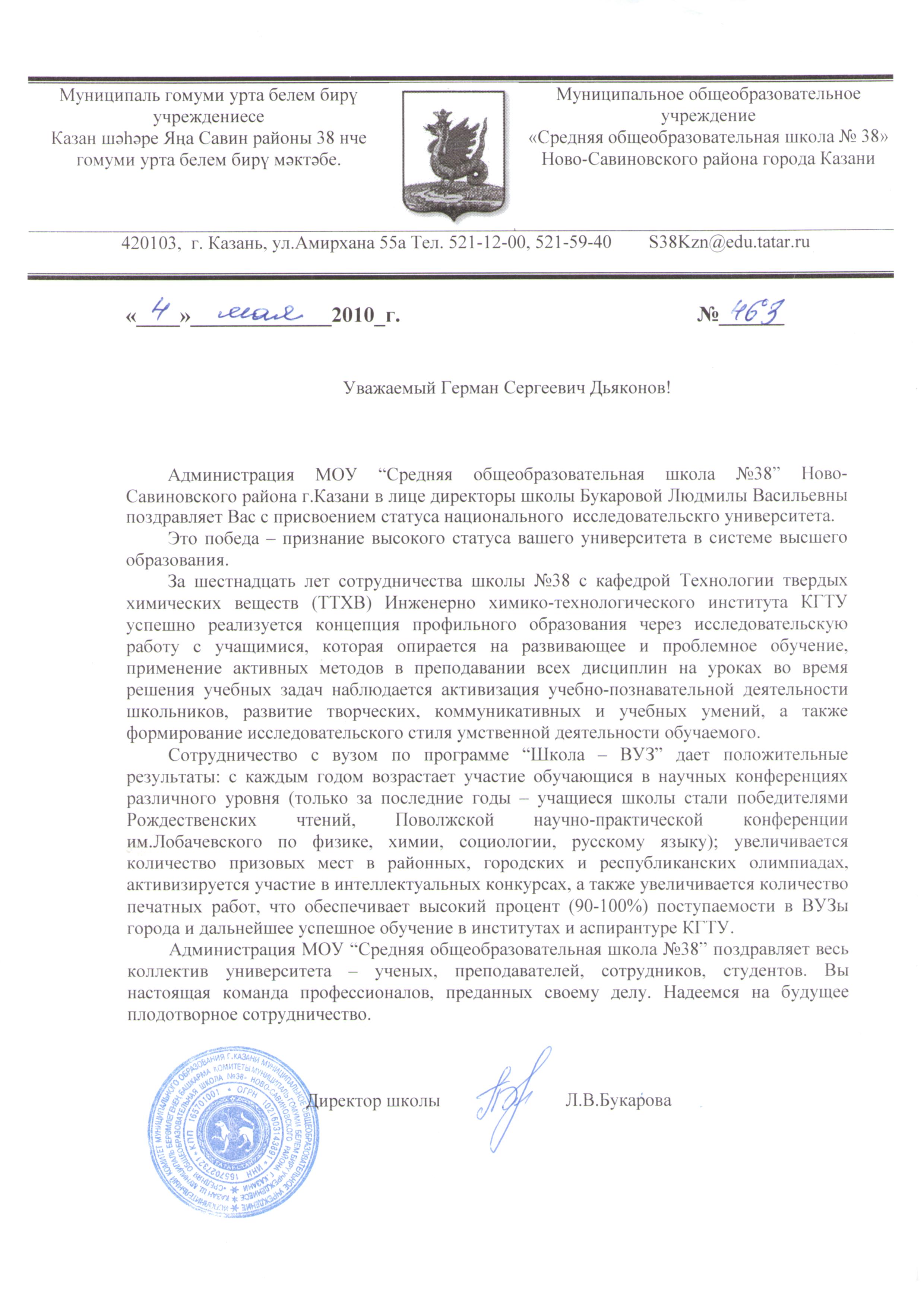 МОУ «Средняя общеобразовательная школа № 38» Ново-Савиновского района г. Казани
