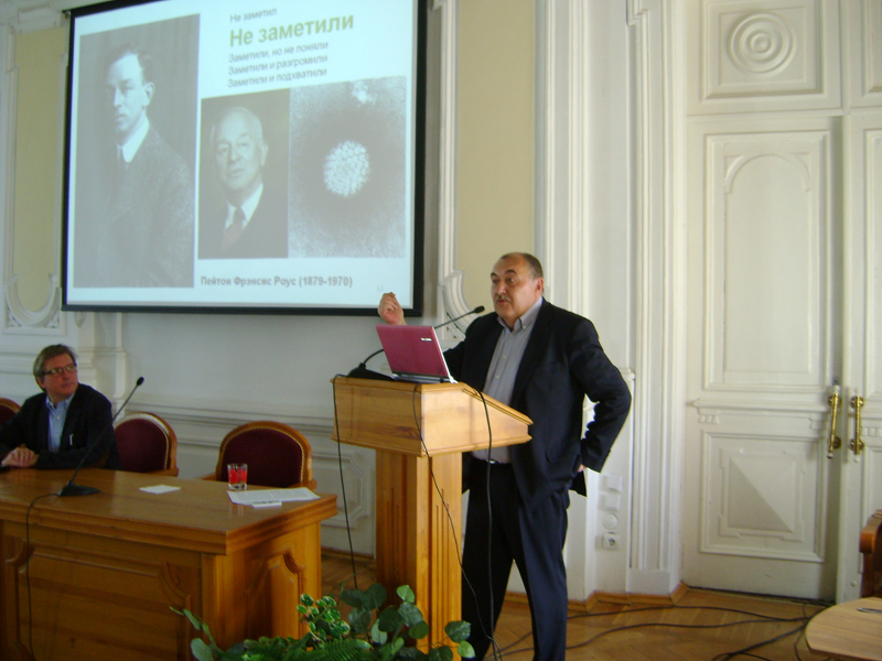 Так, 18 июня в Актовом зале корпуса «Б» при содействии ИРНО ФГБОУ ВПО «КНИТУ» состоялась лекция доктора химических наук, писателя Генриха Эрлиха «Игра случая и разума, или Как делаются открытия»