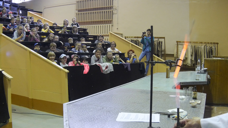 19 июня в лекционной аудитории корпуса «Д» ФГБОУ ВПО «КНИТУ» перед учащимися школ г. Казани прошло интерактивное шоу главного редактора журнала «Химия и жизнь» Любови Стрельниковой «Следствие ведут…химики»