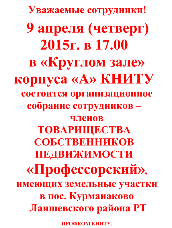 Организационное собрание сотрудников - членов ТСН "Профессорский"