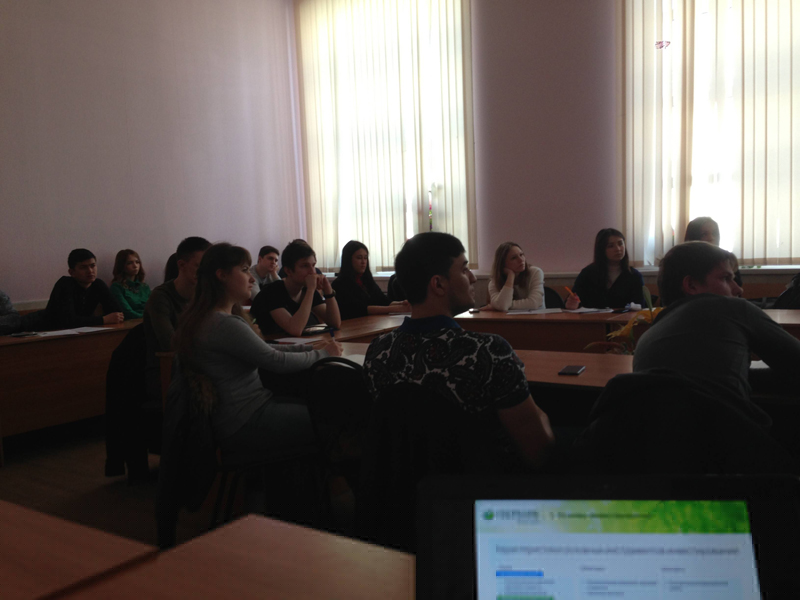 В рамках семинара Михаил Борисович и Сергей Александрович поведали студентам об основах работы фондового рынка и биржевых торгов, об основных рыночных инструментах в этой сфере. Также особое внимание было уделено обзору текущей ситуации на валютном и денежном рынках. Сергей Александрович ознакомил слушателей с порядком заключения договора на оказание брокерских услуг с ОАО «Сбербанк России» и совершения сделок на биржевых торгах.