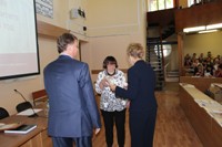 Ректор Г.С.Дьяконов и ученый секретарь З.В.Коновалова вручили первому проректору по учебной работе В.Г.Иванову медаль «За заслуги в развитии инженерного образования России».