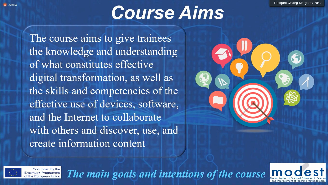 The MODEST project team presented the best lectures of the PhD courses. KNRTU representatives took part in the discussion of these courses. The program consisted of the following courses:
