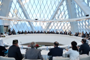 On September 19-20, 2014, the delegation of the Republic of Tatarstan visited Kazakhstan. In the framework of the visit, the delegation took part in the meeting with Akim and members of Akimat of Astana region. After that, the delegation met Chairman of the Senate of Kazakhstan Kassym - Jomart Tokayev and members of the Senate. The partnership opportunities and collaboration issues were discussed during these meetings. Later that day, the delegation of Tatarstan met with heads of Tatar communities in Kazakhstan. President of the Republic of Tatarstan - official web site