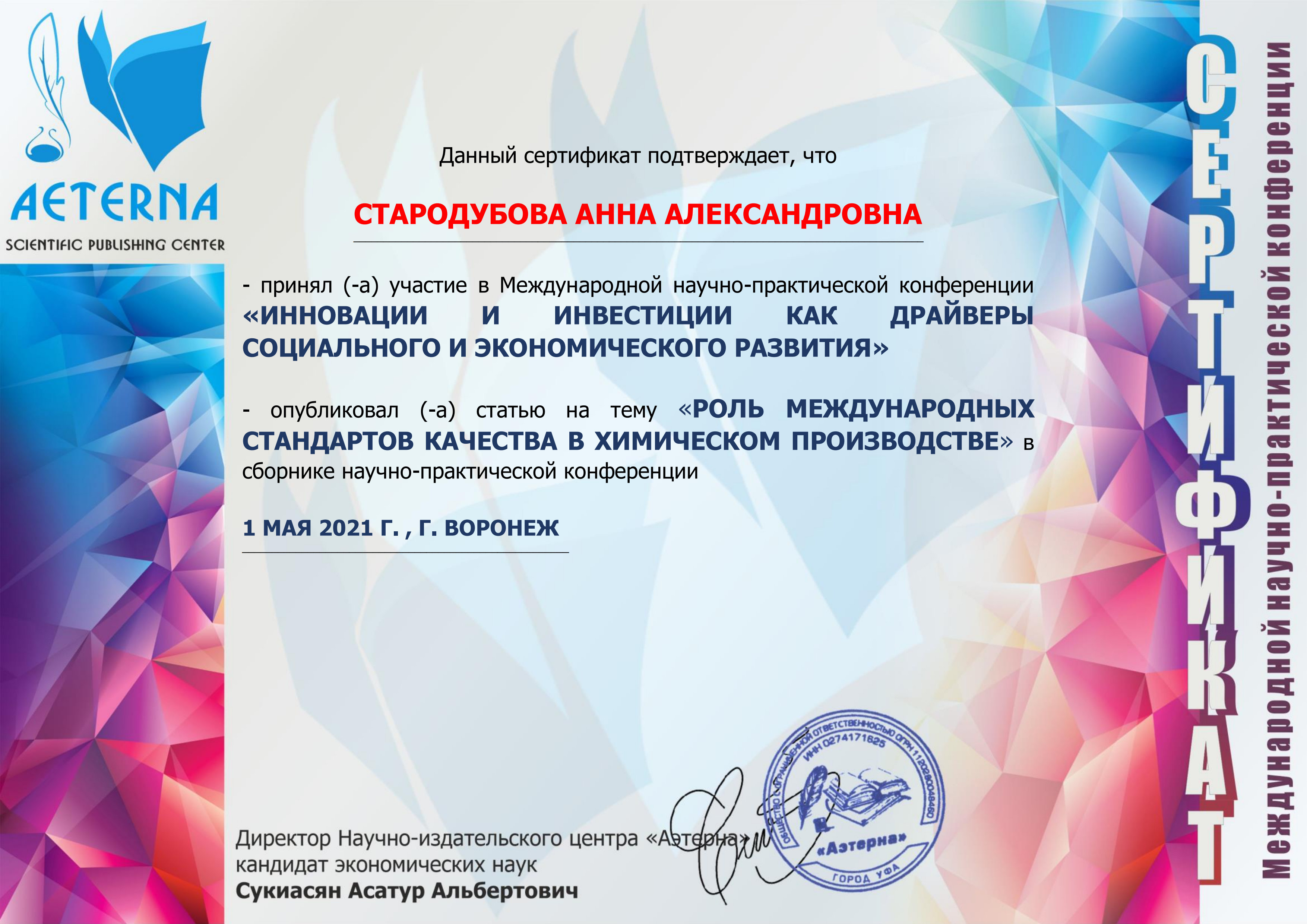 Certificate Professor Starodubova