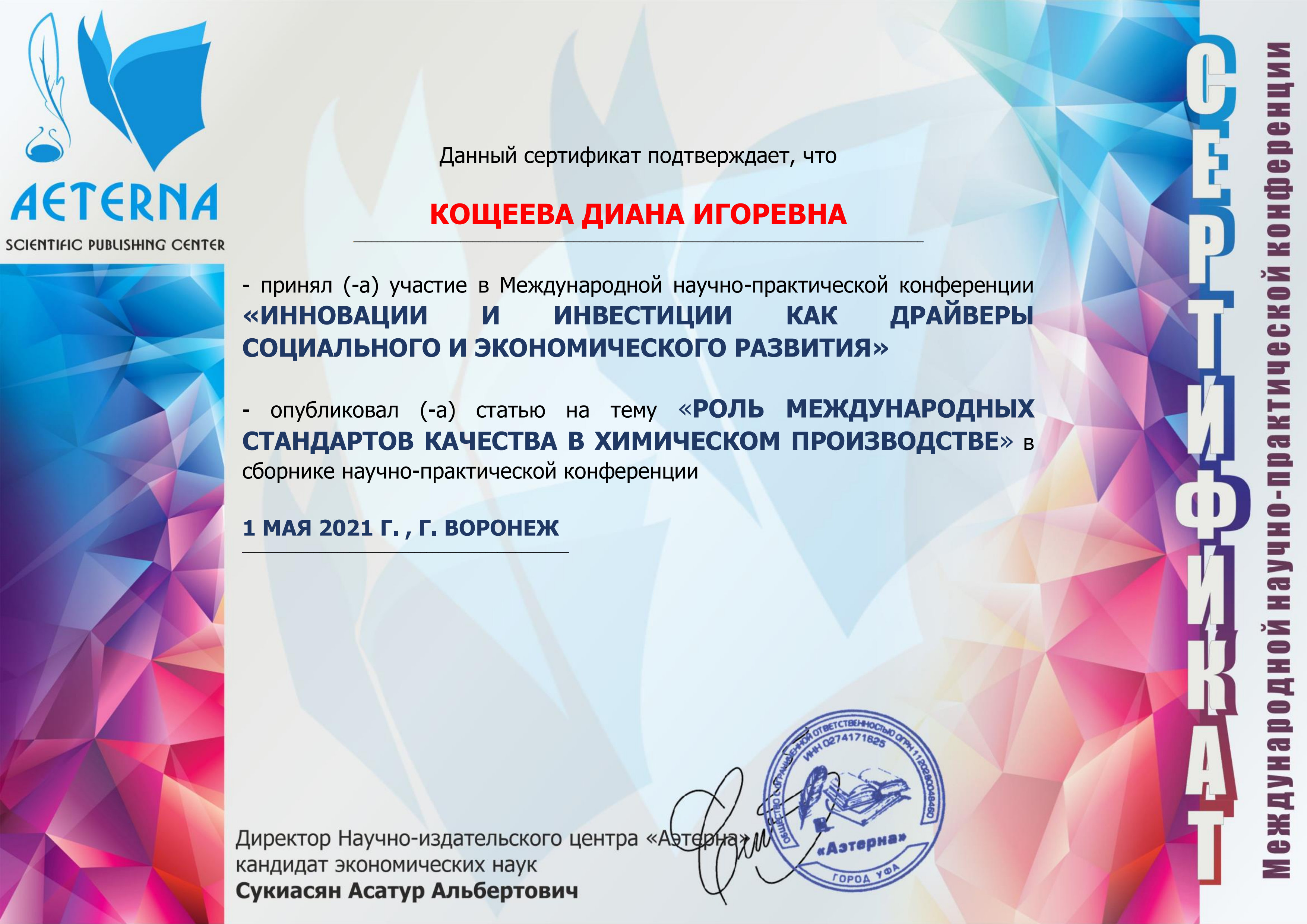 Certificate Kosheeva