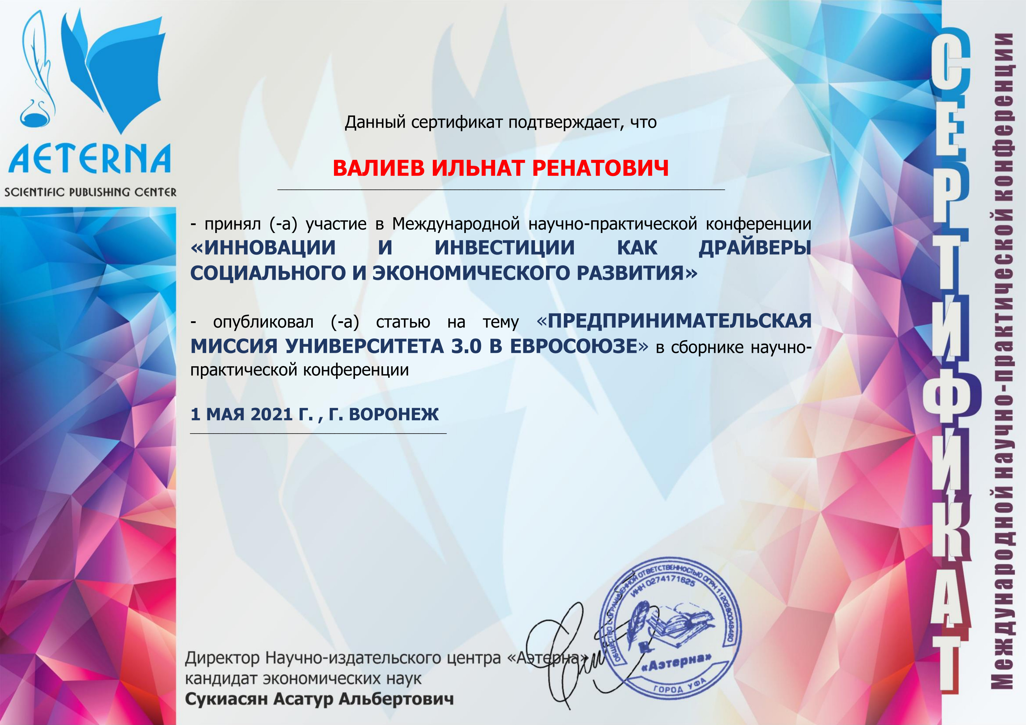 Certificate Valiev