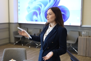 Первой выступила Камила Власенкова, ассистент и аспирант кафедры ВТЭУ. Её самопрезентация называлась «Инженерная мысль и педагогическое мастерство: от производства к науке и кафедре». Такое название не случайно: Камила, выпускница бакалавриата 2022 года, во время обучения в магистратуре работала инженером-технологом на инструментальном производстве АО «Вакуумммаш», занималась механообработкой металлов и проектированием оснастки. Реальный опыт работы с уникальным оборудованием очень помогает ей теперь «на пальцах» объяснять студентам сложные технические процессы.