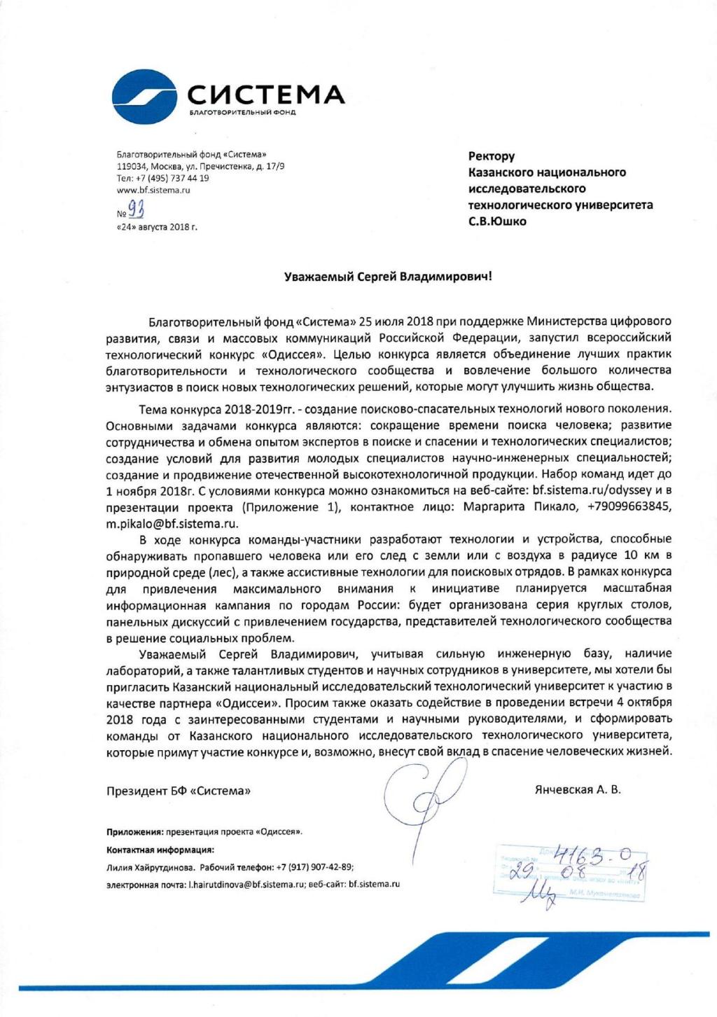 Благотворительный фонд «Система» приглашает талантливых студентов и научных сотрудников КНИТУ к участию во Всеросийском технологическом конкурсе «Одиссея». Тема конкурса 2018-2019 на создание поисково-спасательных технологий нового поколения. Цель проведения Конкурса: содействие деятельности в сфере науки путем поддержки и популяризации проектной деятельности, направленной на решение социальных проблем, среди специалистов технической сферы, в том числе молодежи и студентов, а также содействие добровольческой (волонтерской) деятельности по поиску пропавших людей путем способствования созданию инновационных технологических решений и их внедрению в свободное массовое производство и использование на территории Российской Федерации. Задача Конкурса: создание устройства (Технологического решения), способного обнаружить пропавшего живого человека без источника радиосигнала с земли или с воздуха в радиусе не менее 10 (десяти) километров в природной среде (лес) в течение не более 10 (десяти) часов с момента начала поиска вне зависимости от времени суток и погодных условий. Более подробная информация о Конкурсе на сайте. Контактная информация: Лилия Хайрутдинова. Т. +7(917)907-42-89; |