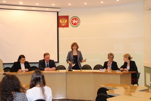 The delegation was represented by the Head of Unit for International Cooperation of the Ministry of Innovation, Science and Research of the German State of North Rhine-Westphalia – Heidi Cordier and the representative of the Ministry of Innovation, Science and Research of the German State of North Rhine-Westphalia – Katsiaryna Karpushenkova. The representatives of the delegation met with the students of the Faculty of Polymers. Heidi Cordier made a speech to the audience where she outlined the role of North Rhine-Westphalia region in collaboration development. The meeting was devoted to awarding the students with certificates for volunteering in the lectures of the Honorary doctor of KNRTU – Professor Michael Droescher (manager of the chemistry cluster in North Rhine-Westphalia), during the course on petrochemistry which was held at KNRTU on October 2017. The delegates discussed the issues of cooperation with the Vice Rector for Academic Affairs – Dr. Alexey Burmistrov and showed the presentation about the priority fields of development of North Rhine-Westphalia region.